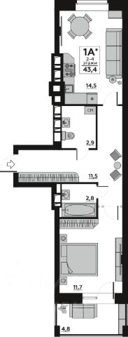 Продаётся 1-комнатная квартира в строящемся доме (Дом 1), срок сдачи: III-кв. 2027, общей площадью 43.46 кв.м., на 4 этаже. Новый жилой комплекс от группы компаний "Волгострой" расположен по адресу: г. Волгоград, по ул. Новорядская.