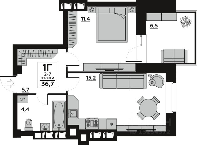 Продаётся 1-комнатная квартира в строящемся доме (Дом 1), срок сдачи: III-кв. 2027, общей площадью 36.67 кв.м., на 6 этаже. Новый жилой комплекс от группы компаний "Волгострой" расположен по адресу: г. Волгоград, по ул. Новорядская.