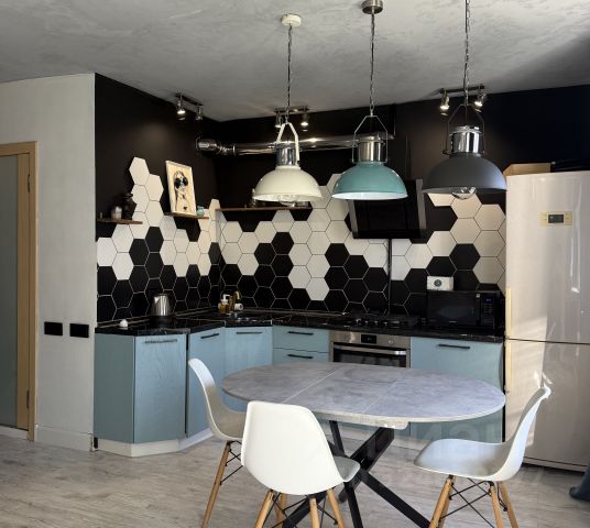 Просторные помещения позволят с удобством разместить все жилые зоны. В прихожей уже установлен шкаф-купе. Конфигурация просторной жилой комнаты позволяет разместить и полноценную зону хранения и пространство для жизни и спальную зону. Кухня почти правильной квадратной формы позволяет разместить и зону готовки, и зону хранения и столовую группу.