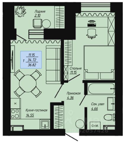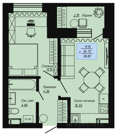 Продаётся 1-комнатная квартира в строящемся доме (КЛЕВЕР), срок сдачи: I-кв. 2026, общей площадью 36.82 кв.м., на 5 этаже. Новый жилой комплекс "КЛЕВЕР" от Специализированного застройщика "Инвестстрой" расположен по адресу: г. Волгоград, по ул. Нильская.