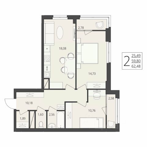 • ✅ Минимальная площадь: 42,1 м²