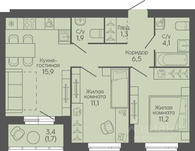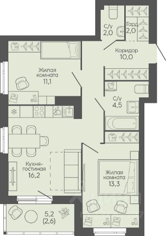 Записывайтесь на просмотр чистовой отделки! В продаже 2-комнатная квартира площадью 56.00 кв. м, расположенная в новом жилом комплексе комфорт-класса "Центропарк". Комплекс от федерального девелопера "Железно" находится в районе Тулака - географическом центре Волгограда. 15-минутный город Мы создаём мини-город с продуманной организацией для комфортной и счастливой жизни. До 10% площадей - это кафе, магазины и другие сервисы в шаговой доступности. Развитая социальная, пешеходная и транспортная инфраструктура сделает пребывание в жилом квартале максимально удобным. А главные точки притяжения - просторная площадь и парк (сердце проекта) - станут излюбленными местами жителей и гостей. Архитектура в гармонии с природой Главная идея концепции - это синергия архитектуры и природы. Здесь рождается новая философия городской жизни, а человек идёт рука об руку с природой. Дома органично вписываются в "зелёную реку" парка, а переменная этажность создаёт уникальный, динамичный облик застройки. Пластикой и цветовым оформлением фасадов передаётся легкость и свежесть. Яркие акценты придают домам индивидуальность и подчеркивают их современный облик. На фасадах разместятся открытые террасы и глубокие лоджии. Корзины для кондиционеров совмещены с лотками для высадки растений, что позволяет внести живую зелень в облик домов. Дизайнерские подъезды Входные группы Центропарка продолжают тему природы: дерево и вода создают живую атмосферу, а кондиционеры обеспечивают комфорт круглый год Дома ручной работы Здания, сотканные вручную: каждый кирпич - вклад мастера, каждый шов - след заботы, а весь дом - живое воплощение комфорта, надёжности и уюта. Кирпич долговечен и экологичен. Он не теряет своих свойств со временем, не боится ни жары, ни морозов и десятилетиями сохраняет прочность. Такие дома не требуют лишнего ухода и всегда востребованы - это надёжная инвестиция. Двор-парк В Центропарке дворы созданы не как отдельные пространства, а как естественное продолжение зелёного мира комплекса. Здесь преобладает зелень: газоны, деревья, кустарники и цветники формируют атмосферу настоящего парка, где приятно гулять, отдыхать и встречаться с соседями. Границы между двором и линейным парком словно растворяются - пространства плавно перетекают одно в другое. Такой подход создаёт ощущение свободы, гармонии и единства с природой, делая каждый двор уютным, открытым и живым.