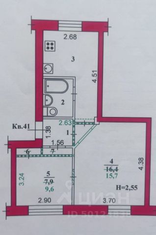 Хрущевская планировка: общая 43.20 / жилая 28.40 / кухня 5.90