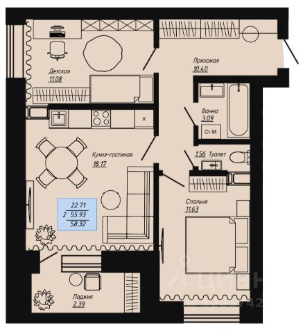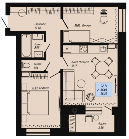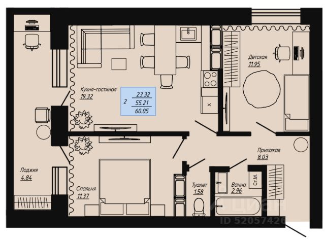 Продаётся 2-комнатная квартира в строящемся доме (КЛЕВЕР), срок сдачи: I-кв. 2026, общей площадью 49.39 кв.м., на 6 этаже. Новый жилой комплекс "КЛЕВЕР" от Специализированного застройщика "Инвестстрой" расположен по адресу: г. Волгоград, по ул. Нильская.