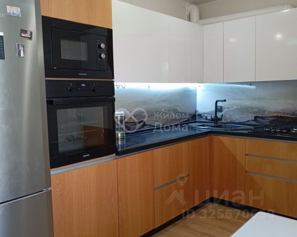 - отличный кухонный гарнитур, в котором удобно располагается вся необходимая техника (варочная панель, духовой шкаф, посудомойка, мойка);