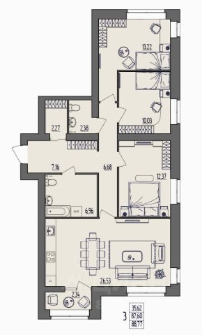 В квартире отличное планировочное решение: просторная кухня 11,3 кв/м, большая гостиная 28,9 кв/м, спальня 20,1 кв/м, вторая спальня 16 кв/м, дополнительная комната 7,5 кв/м (сейчас оборудована под кабинет), два сан.узла.