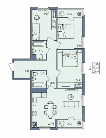 • ✅ Минимальная площадь: 57,1 м²