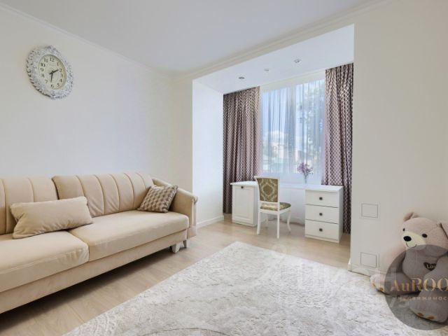 В квартире отличное планировочное решение: просторная кухня 11,3 кв/м, большая гостиная 28,9 кв/м, спальня 20,1 кв/м, вторая спальня 16 кв/м, дополнительная комната 7,5 кв/м (сейчас оборудована под кабинет), два сан.узла.