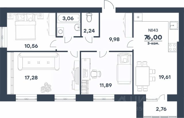 • ✅ Минимальная площадь: 43,4 м²
