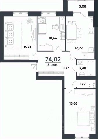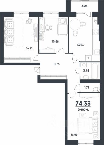 Общая площадь квартиры указана с учётом лоджий.