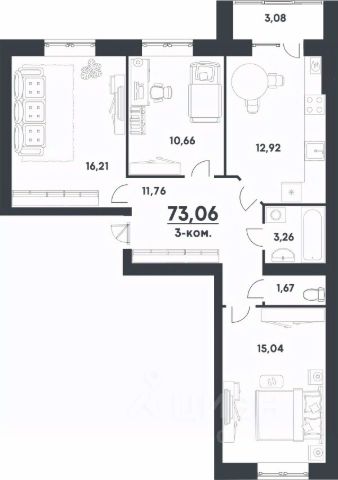 Большая кухня-гостиная: функциональный и в то же время изящный кухонный гарнитур с необходимой техникой лучших производителей; обеденная зона; зона отдыха с раскладным диваном. Из кухни-гостиной выход на просторную застеклённую и утеплённую лоджию. Спальная зона: 2 изолированные спальные комнаты. В одной из комнат сделано грамотное зонирование и выход на застеклённую утеплённую лоджию. Пол на лоджии с системой подогрева. В коридоре оборудована просторная гардеробная комната. Санузел раздельный. В ванной комнате установлена угловая ванна, стиральная машинка и тумба с раковиной для умывания. В туалетной комнате сделана инсталляция для унитаза и скрытно установлен электрический накопительный водонагреватель для исключения перебоев с горячим водоснабжением, на период отключения его для профилактики.