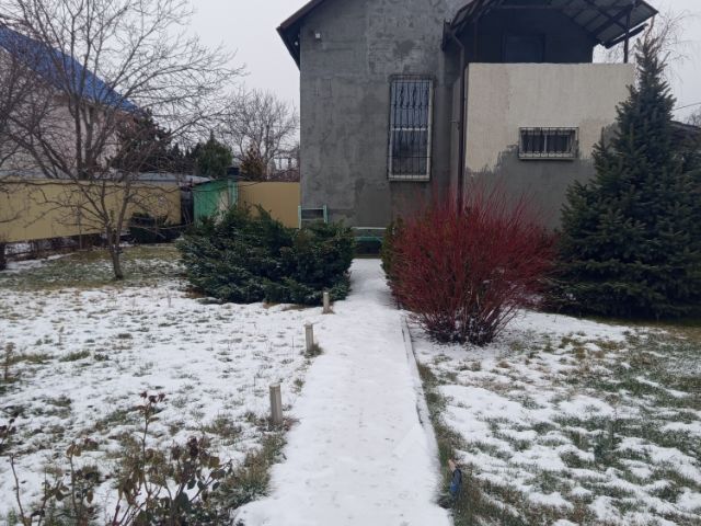 Улица засыпана асфальтной крошкой, хорошие соседи. На участке везде залиты бетонные дорожки. Участок огорожен металлическим забором.