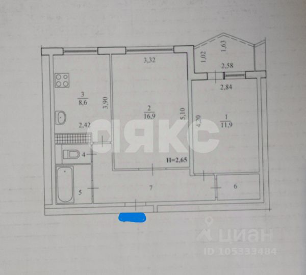 • 7 минут Пешком до сквера имени В. А. Глазкова Продам квартиру 50 м2 (квадратных метров) в Волгограде.