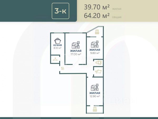 • ✅ Минимальная площадь: 50,2 м²