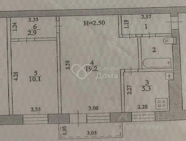 О КВАРТИРЕ: Двухкомнатная квартира на 1 этаже трехэтажного дома. Общая площадь квартиры 42,1 кв.м., при этом кухня имеет площадь 6,0 кв.м.