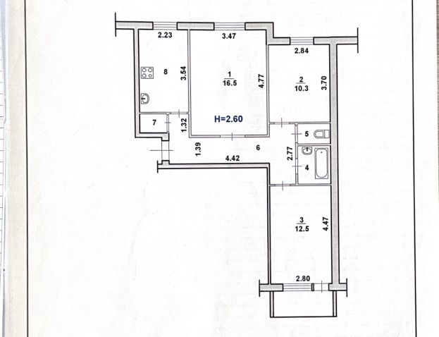 * Площадь куxни: 6,6 м².