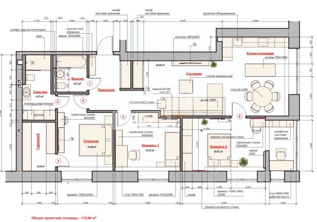-КУХОННАЯ ТЕХНИКА (варочная панель, духовой шкаф, вытяжка, холодильник, посудомоечная машина);