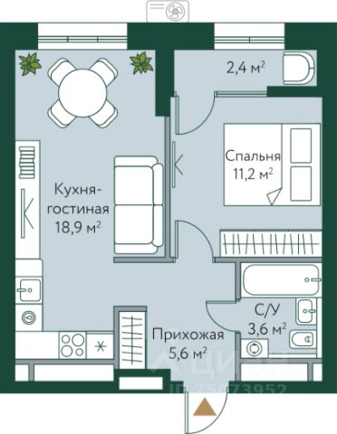 • ✅ Минимальная площадь: 36,5 м²