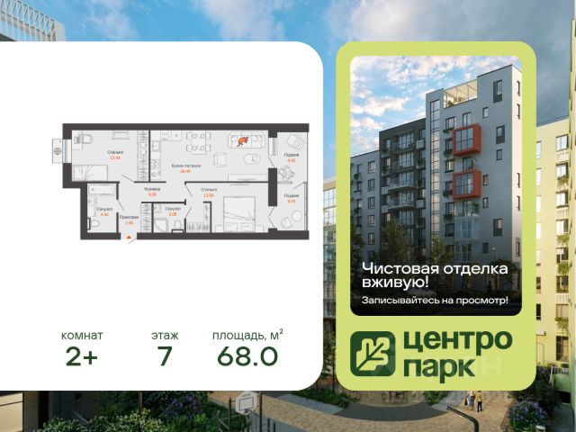 Записывайтесь на просмотр чистовой отделки! В продаже 2-комнатная квартира площадью 81.00 кв. м, расположенная в новом жилом комплексе комфорт-класса "Центропарк". Комплекс от федерального девелопера "Железно" находится в районе Тулака - географическом центре Волгограда. 15-минутный город Мы создаём мини-город с продуманной организацией для комфортной и счастливой жизни. До 10% площадей - это кафе, магазины и другие сервисы в шаговой доступности. Развитая социальная, пешеходная и транспортная инфраструктура сделает пребывание в жилом квартале максимально удобным. А главные точки притяжения - просторная площадь и парк (сердце проекта) - станут излюбленными местами жителей и гостей. Архитектура в гармонии с природой Главная идея концепции - это синергия архитектуры и природы. Здесь рождается новая философия городской жизни, а человек идёт рука об руку с природой. Дома органично вписываются в "зелёную реку" парка, а переменная этажность создаёт уникальный, динамичный облик застройки. Пластикой и цветовым оформлением фасадов передаётся легкость и свежесть. Яркие акценты придают домам индивидуальность и подчеркивают их современный облик. На фасадах разместятся открытые террасы и глубокие лоджии. Корзины для кондиционеров совмещены с лотками для высадки растений, что позволяет внести живую зелень в облик домов. Дизайнерские подъезды Входные группы Центропарка продолжают тему природы: дерево и вода создают живую атмосферу, а кондиционеры обеспечивают комфорт круглый год Дома ручной работы Здания, сотканные вручную: каждый кирпич - вклад мастера, каждый шов - след заботы, а весь дом - живое воплощение комфорта, надёжности и уюта. Кирпич долговечен и экологичен. Он не теряет своих свойств со временем, не боится ни жары, ни морозов и десятилетиями сохраняет прочность. Такие дома не требуют лишнего ухода и всегда востребованы - это надёжная инвестиция. Двор-парк В Центропарке дворы созданы не как отдельные пространства, а как естественное продолжение зелёного мира комплекса. Здесь преобладает зелень: газоны, деревья, кустарники и цветники формируют атмосферу настоящего парка, где приятно гулять, отдыхать и встречаться с соседями. Границы между двором и линейным парком словно растворяются - пространства плавно перетекают одно в другое. Такой подход создаёт ощущение свободы, гармонии и единства с природой, делая каждый двор уютным, открытым и живым.