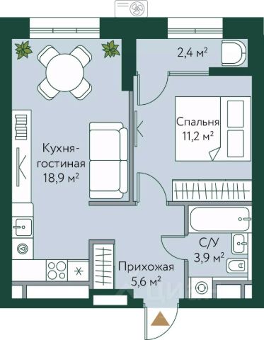 идеальная семейная планировка: две просторные изолированные комнаты площадью 22 кв.м. и 15 кв.м., , большая кухня-гостиная 1 1 кв.м., холл, санузел площадью 6.5 кв.м. совмещен - удобно