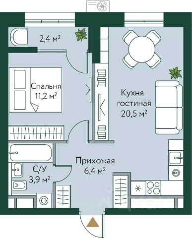 • ✅ Минимальная площадь: 36,5 м²