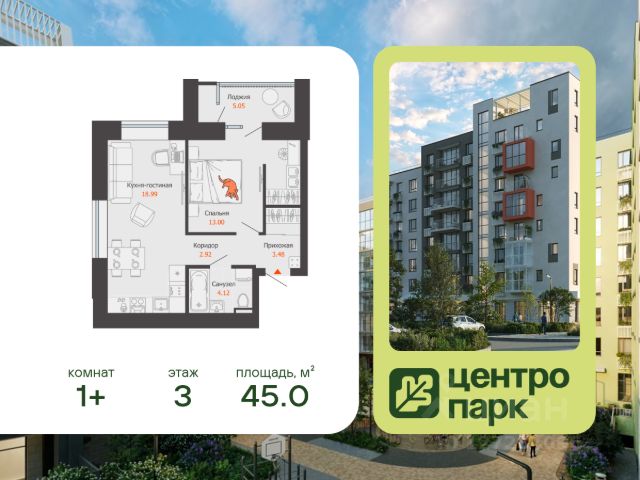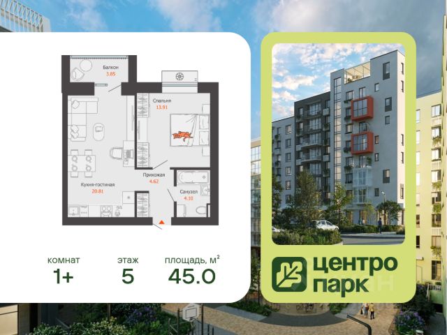 В продаже 1-комнатная квартира площадью 43.00 кв. м, расположенная в новом жилом комплексе комфорт-класса "Центропарк". Комплекс от федерального девелопера "Железно" находится в районе Тулака - географическом центре Волгограда.