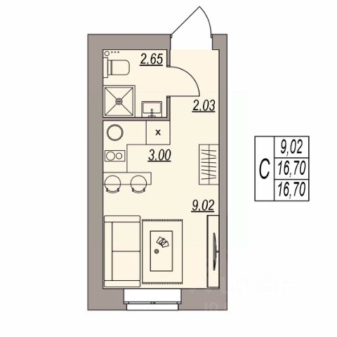 Площадь апартаментов: 15 кв. м.