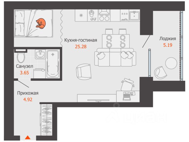 В продаже студия площадью 32.00 кв. м, расположенная в новом жилом комплексе комфорт-класса "Центропарк". Комплекс от федерального девелопера "Железно" находится в районе Тулака - географическом центре Волгограда.