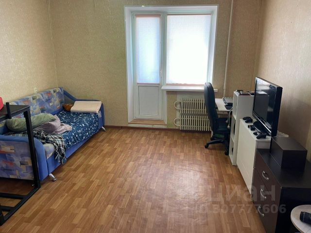 Удачная планировка, просторная комната на два окна: окно большое трехстворчатое, имеются сетки на окна; и отдельно балкон.