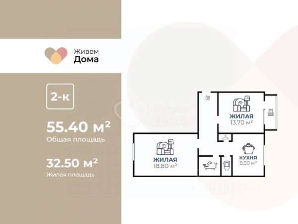 В квартире выполнен косметический ремонт, что позволяет новому владельцу сразу заселиться и жить. Планировка включает две комнаты и отдельный санузел. Из окон открывается вид на улицу и во двор, а также есть одна лоджия, где можно организовать уютное место для отдыха. .