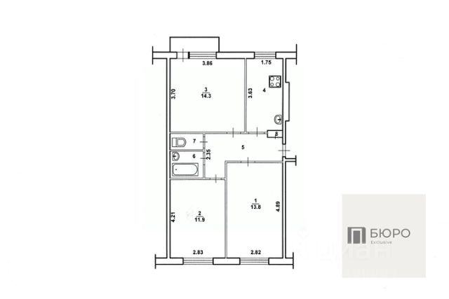Общая площадь -35,7 кв. м. ;