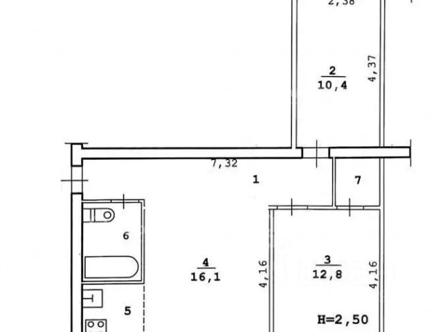 Общая площадь квартиры - 66,7 кв.м. (без учета площади балкона).