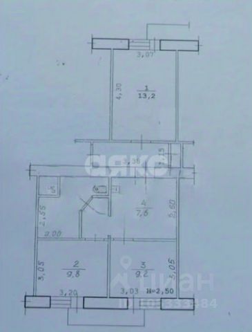 Высокие потолки - 3 м.! Потолки НЕ натяжные - отштукатуренные.