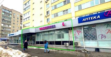 Торговое помещение на первом этаже многоэтажного жилого дома, первая линия, хороший трафик. Вокруг устоявшееся торговая зона с большим количеством сетевых арендаторов. Парковочный карман вдоль этого и соседних домов.