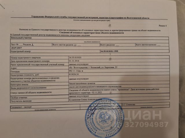 Продается участок ИЖС для строительства дома, по адресу - Волгоградская область (г. Волжский) п. Краснооктябрьский. Площадь участка - 912 кв.м Правильной формы. 1.2 км от Волги. Вся инфраструктура вне посредственной близости. Организовать просмотр можно по следующим Координатам ( 48.905962, 44. 784475 ) Подходит под покупку с ипотекой, все виды жилищных сертификатов! СРОЧНО!!!!! Объект 1-305912