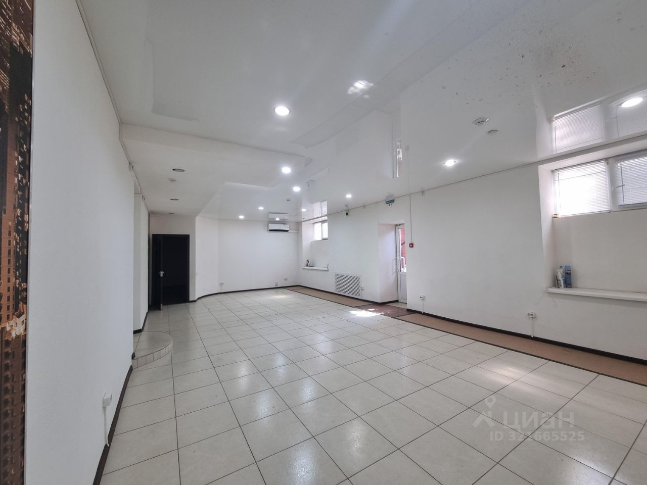 Площадь помещения 97,6м2, планировка свободная, высота потолка 2,8м, стены выровнены и окрашены, на полу плитка, есть санузел.
