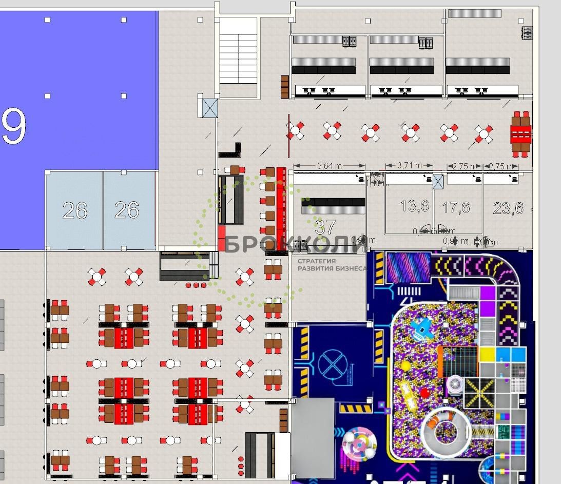 Помещения в новой зоне фудкорта: