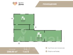 Общая площадь: 208 кв. метров.