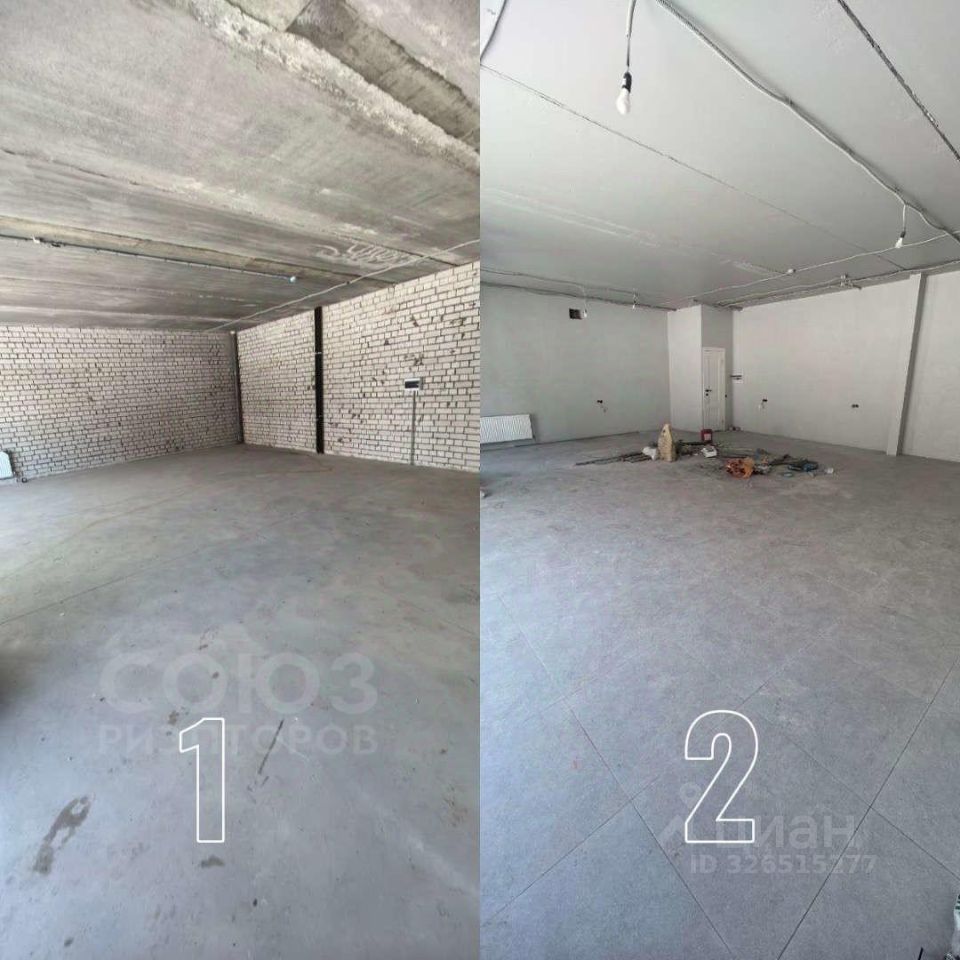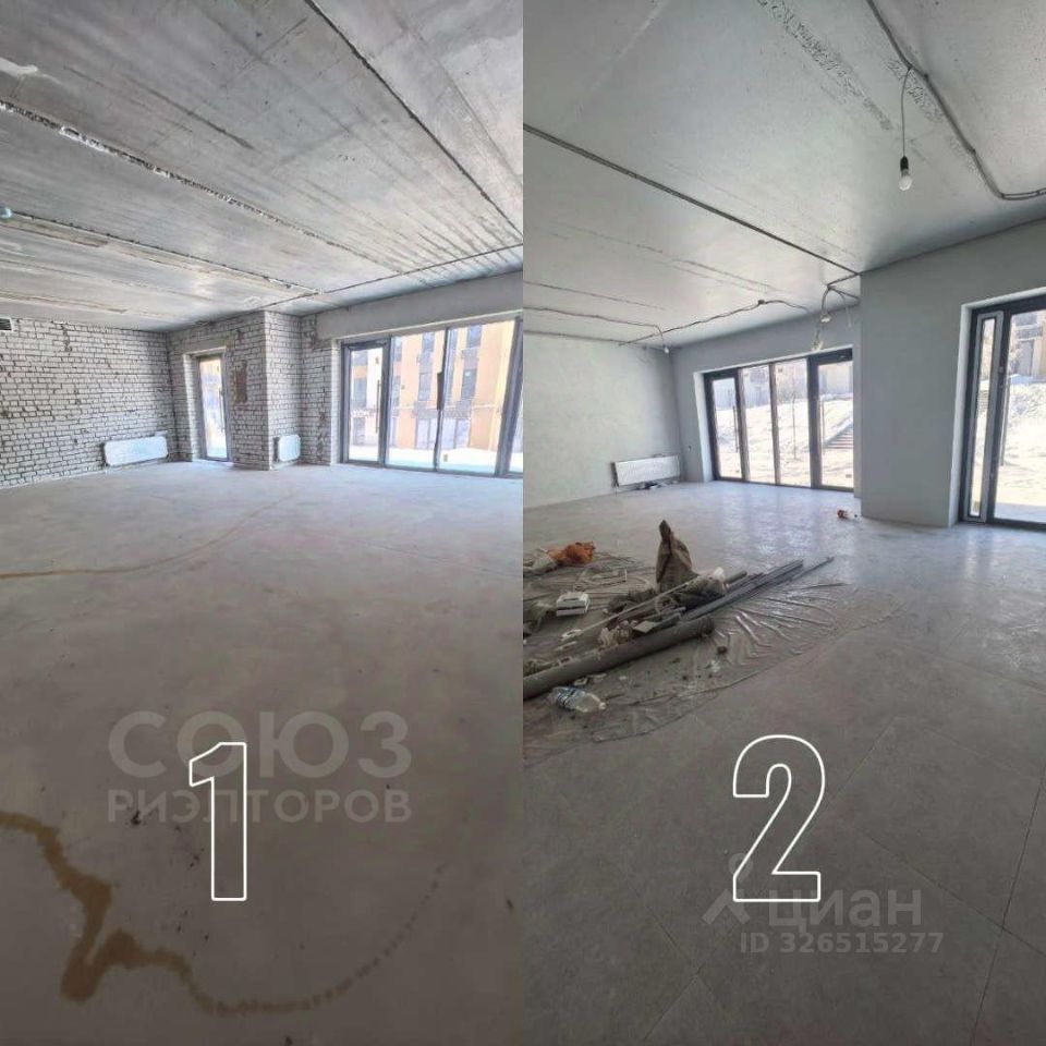 На фото указаны варианты отделки в помещении. В текущий момент - состояние под номером 1, идет ремонт, возможно снять как я чистовой отделке (номер 2) , так и в черновой отделке .