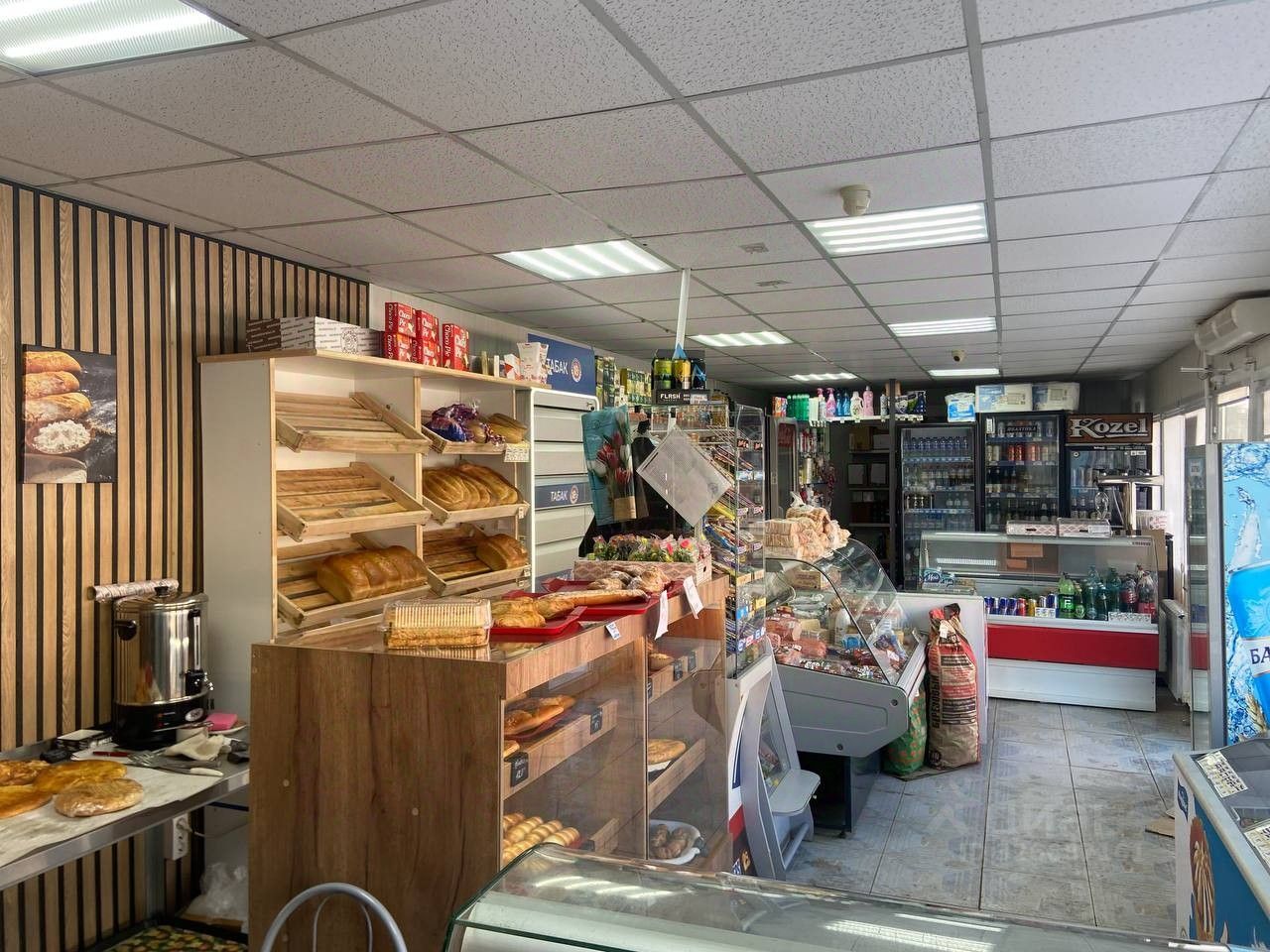 Вода, канализация центральные, электромощность 15 КВТ (можно увеличить до 60 КВТ). В настоящее время там находится пекарня и продуктовый магазин (бизнес собственника). По возможности можно рассмотреть аренду всей площади павильона (100 кв. м.). Также собственник рассматривает вариант сдачи площади со всем оборудованием (витрины, холодильники, печь, мясорубка, тестомес и другое).