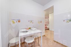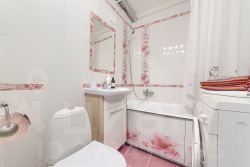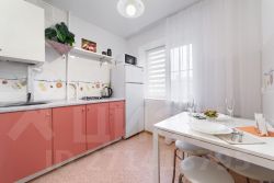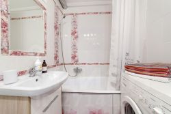 Оснащена современной мебелью для комфортного проживания: двуспальная кровать с высококачественным зонированным ортопедическим матрасом, раскладной диван-кровать, плоский Full HD смарт-телевизор с доступом в интернет и кабельным телевидением от Дом.ру,, сплитсистема, бесплатный высокоскоростной Wi-Fi, холодильник, стиральная машина, микроволновая печь, кухонный гарнитур с необходимой посудой, утюг, гладильная доска, фен.