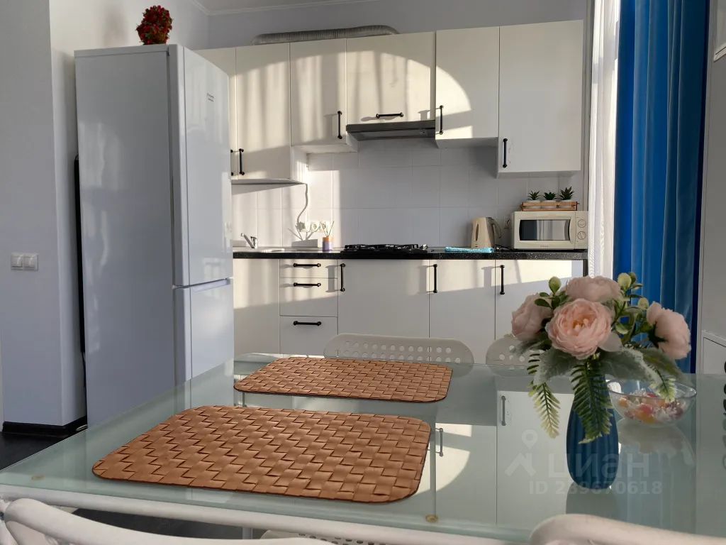 В квартире имеется двухспальная кровать с удобным матрасом и раскладной диван евро книжка. Кухня оснащена полноценным кухонным гарнитуром, обеденным столом, стульями.