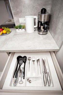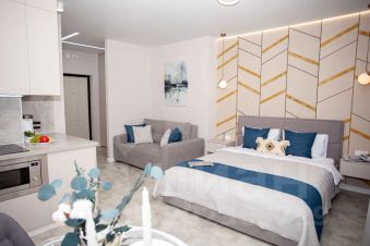 Квартира оснащена всем необходимым для проживания. Для комфортного сна двуспальная кровать с ортопедическими матрасами разной степени жёсткости, система хранения для вещей, столовая группа: стол и стулья, удобный раскладывающийся диван. Кухня оснащена: кухонный гарнитур, холодильник, чайник, посуда для приготовления и приема пищи, вытяжка и посуда для приготовления и красивой сервировки. В ванной комнате: стиральная машина, фен, сушилка для белья. А также утюг, гладильная доска. Белоснежная постель и пушистые полотенца премиум качества.