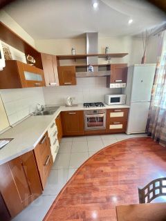 В квартире сделан косметический ремонт. Обстановка включает всю необходимую мебель на кухне и в комнате, поэтому можно сразу заселиться и жить без забот. Кухня просторная, площадью 10 кв. м, где можно удобно готовить и проводить время за обеденным столом. Ванная комната оборудована ванной, что позволит вам расслабиться после долгого дня. Из техники в наличии кондиционер, холодильник, телевизор и стиральная машина — все, что нужно для комфортного проживания.