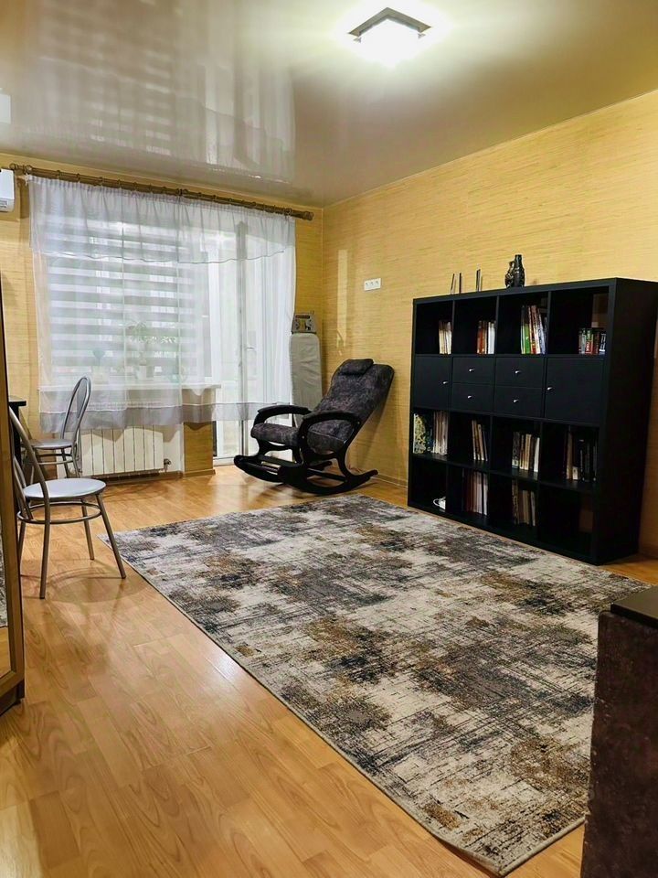 Сдается 1 комнатная уютная и комфортная студия. В квартире есть все для уютного проживания. Зимой тепло, летом прохладно, соседи тихие и доброжелательные. Кухня оснащена всем необходимым: холодильник, плита газовая, посуда, микроволновая печь, посудомойка, чайник, стиральная машина. В доме на 1 этаже магазин Магнит, кафетерий Конфетки -Бараночки. Рядом выезд на 3 магистральное кольцо, от центра 20 минут на транспорте. Парковка во дворе бесплатная.