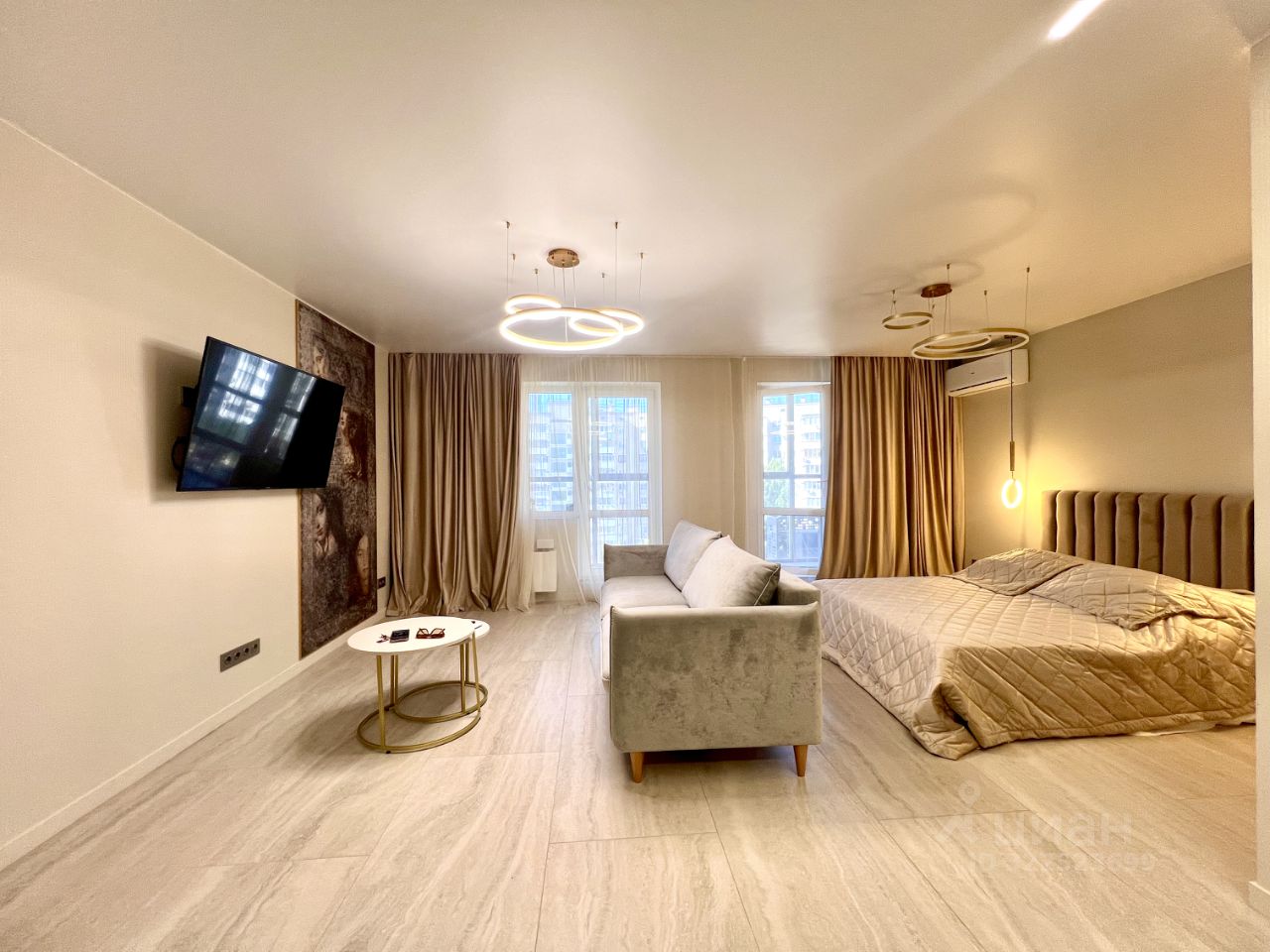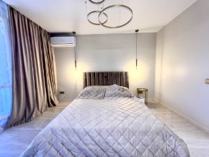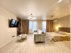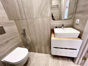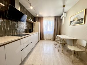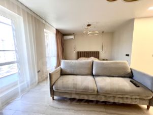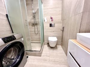 Квартира с дизайнерским ремонтом, полностью готова к проживанию. Есть вся необходимая мебель как на кухне, так и в комнате. Техника включает кондиционер, холодильник, телевизор и стиральную машину. Санузел совмещённый, оборудован современной душевой кабиной. Просторная лоджия — отличное место для отдыха.