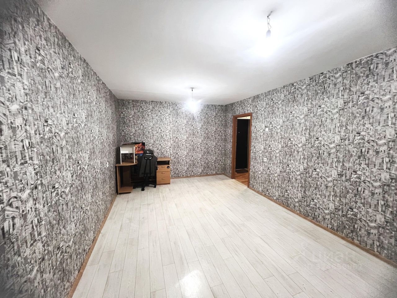 Рабочее пространство организовано с помощью компьютерного стола и удобного стула, что позволит вам комфортно работать или учиться из дома.
