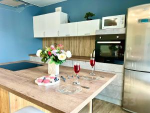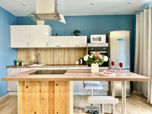 Оснащение: двуспальная кровать и двуспальный диван. Новый большой ЖК диагональю 50 дюймов и современный ремонт Мощная сплит система, бесплатный WI-Fi. Техника (ЖК-телевизор со Smart-TV, стиральная машина, электрическая плита, холодильник, микроволновая печь, электрочайник, фен, утюг). Посуда и кухонные принадлежности для приготовления и приема пищи. Фильтр для чистой питьевой воды