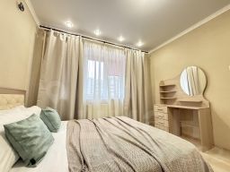 Просторное размещение. В квартире есть двуспальная кровать и три диванакровати — комфортно разместятся до 7 человек. Современный ремонт. Стильное оформление, качественная мебель и бытовая техника создают атмосферу домашнего уюта. Всё продумано для вашего комфортного проживания.