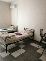 Две раздельные односпальные кровати, телевизор, кондиционер. Ванная комната и туалет в коридоре общие.